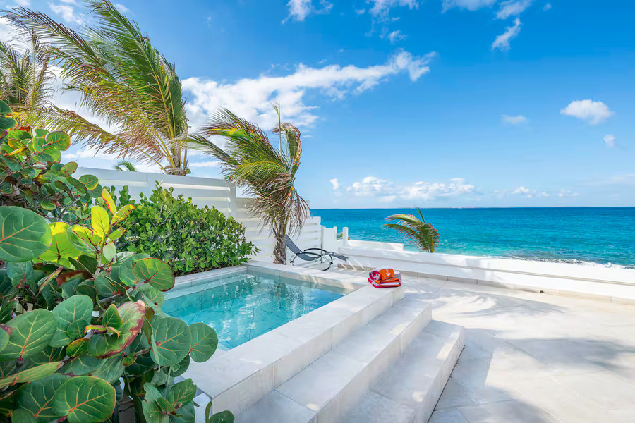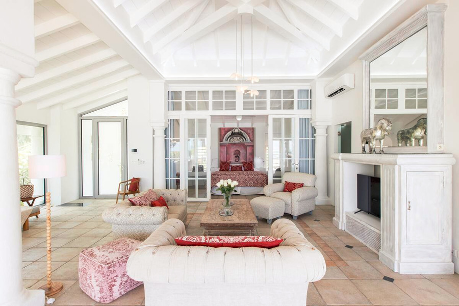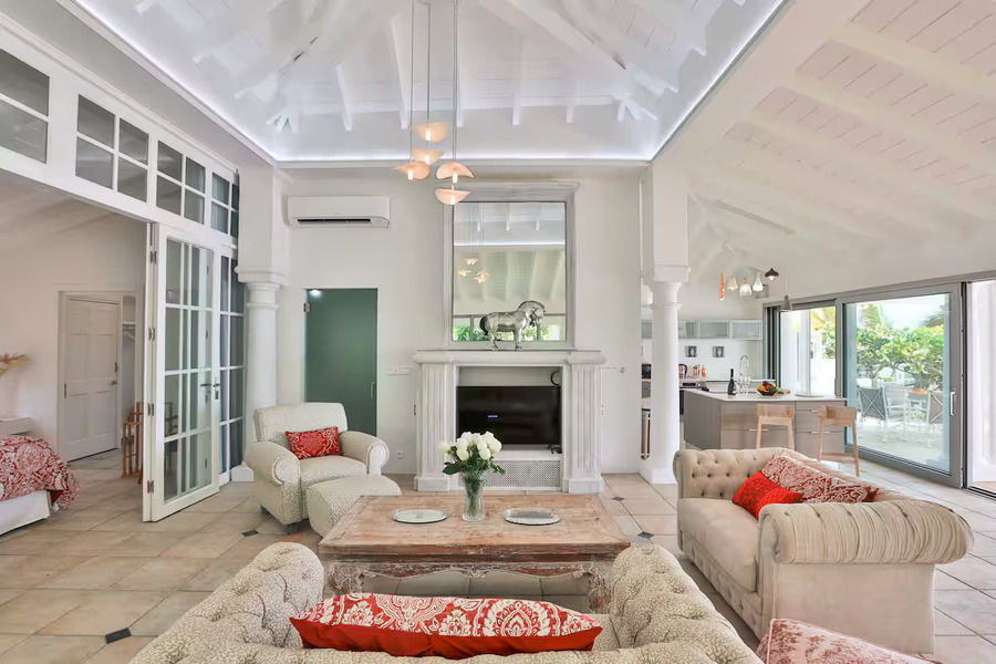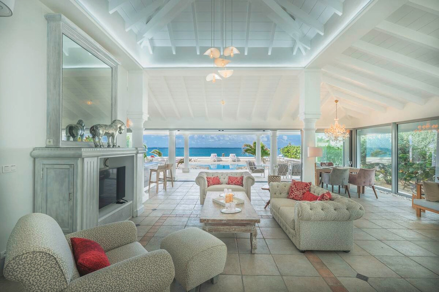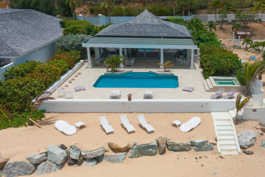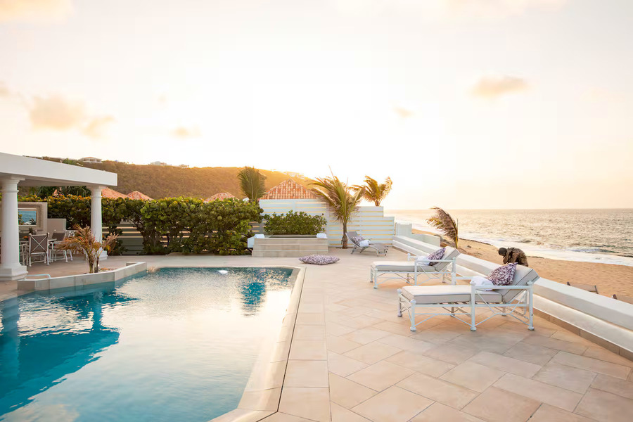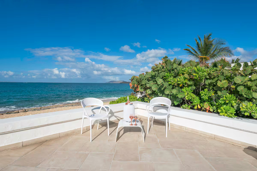 Situated directly on Baie Rouge beach, guests are treated to private beach access and breathtaking panoramic views of the ocean, with the allure of Anguilla visible in the distance.