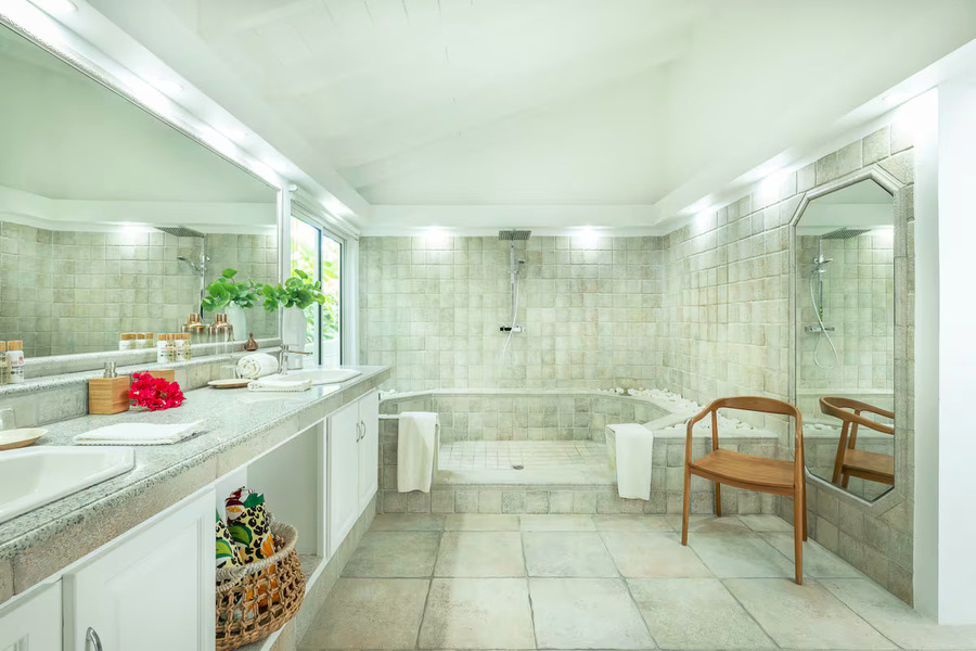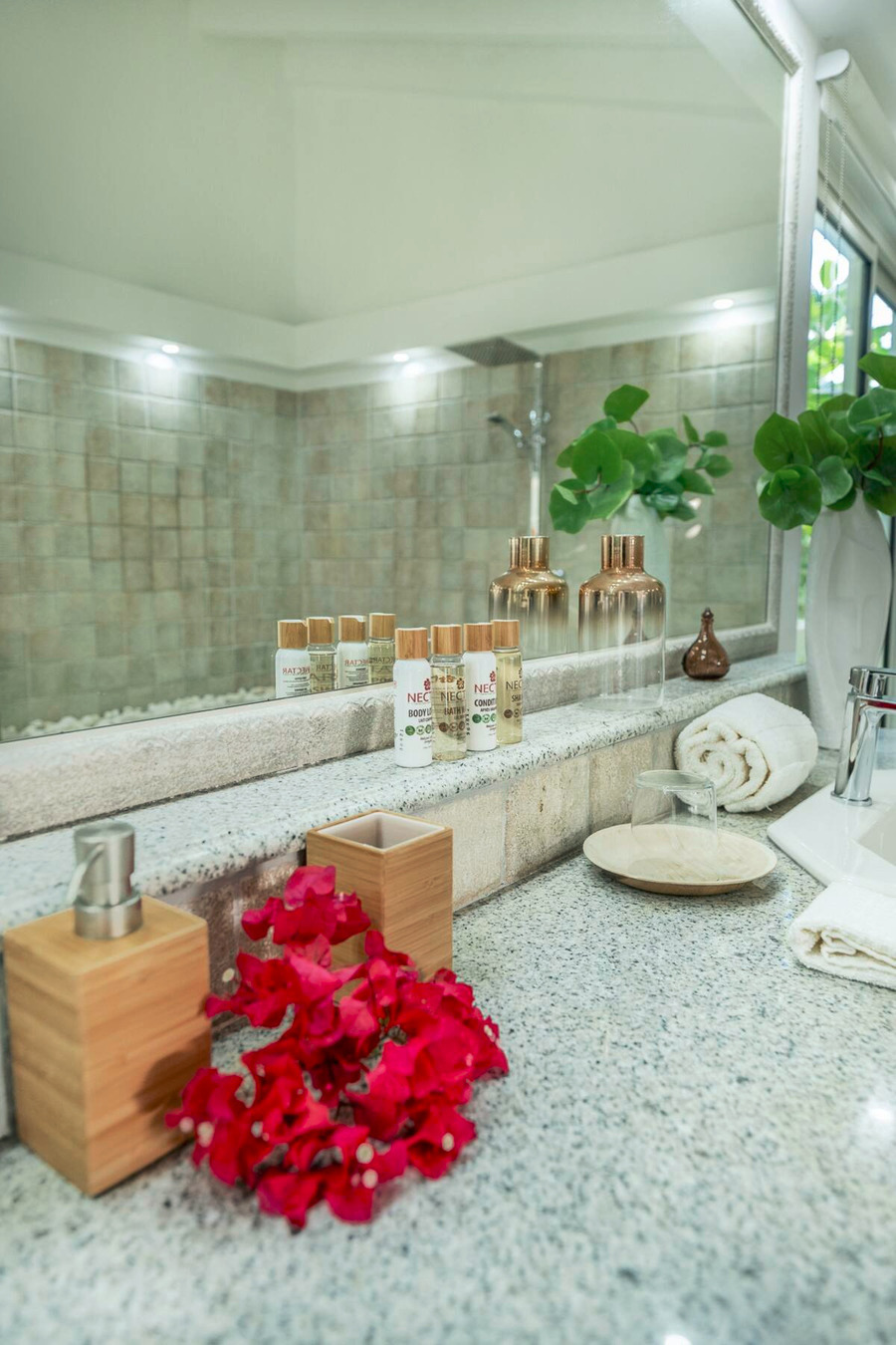 Outside, a private pool and sun deck beckon guests to unwind, while a soothing Jacuzzi offers relaxation amidst the tropical surroundings. The villa ensures every comfort and convenience, including a king-size bed in the master suite, high-speed internet, a gas barbecue, DVD and CD player, ice machine, and full air conditioning.