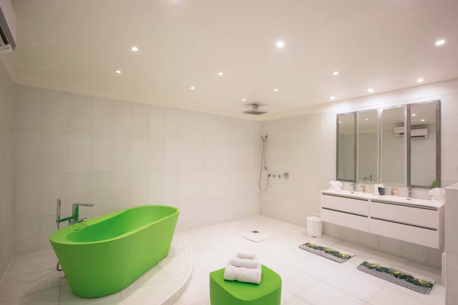 • Bedroom 4: King size bed, Ensuite bathroom with stand-alone shower and bathtub, Television, Ocean view
