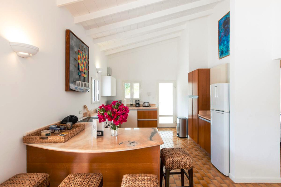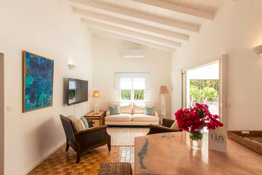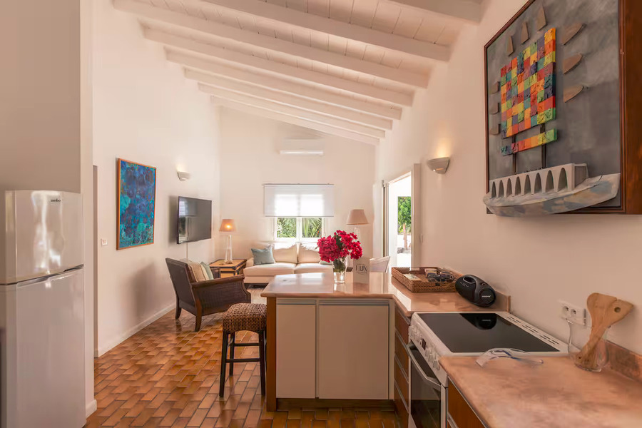 Welcome to Barefoot Beach Bungalow—a charming slice of seaside paradise! Located in the exclusive Terres Basses Residence, one of the island’s safest and most sought-after gated communities with 24-hour security, this cozy retreat perfectly blends laid-back coastal living with retro artsy flair.