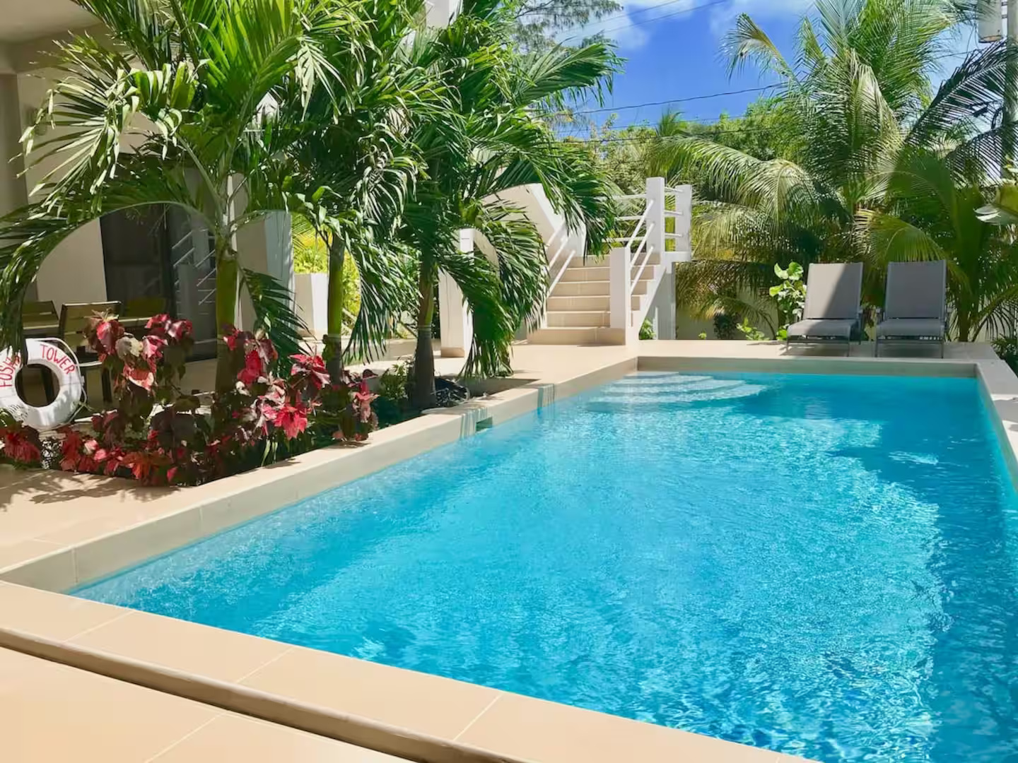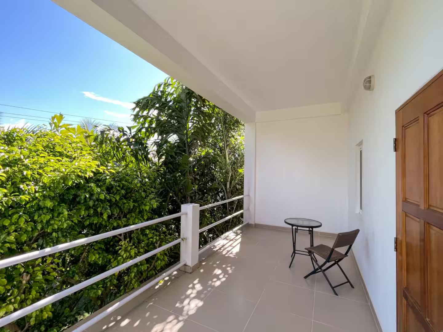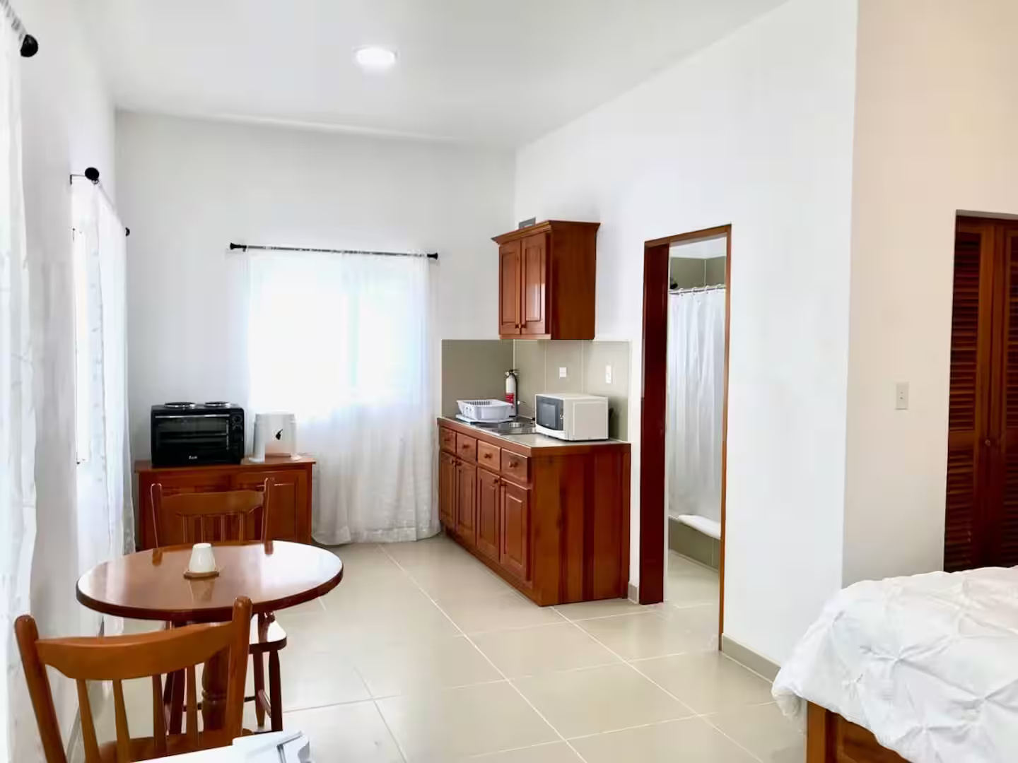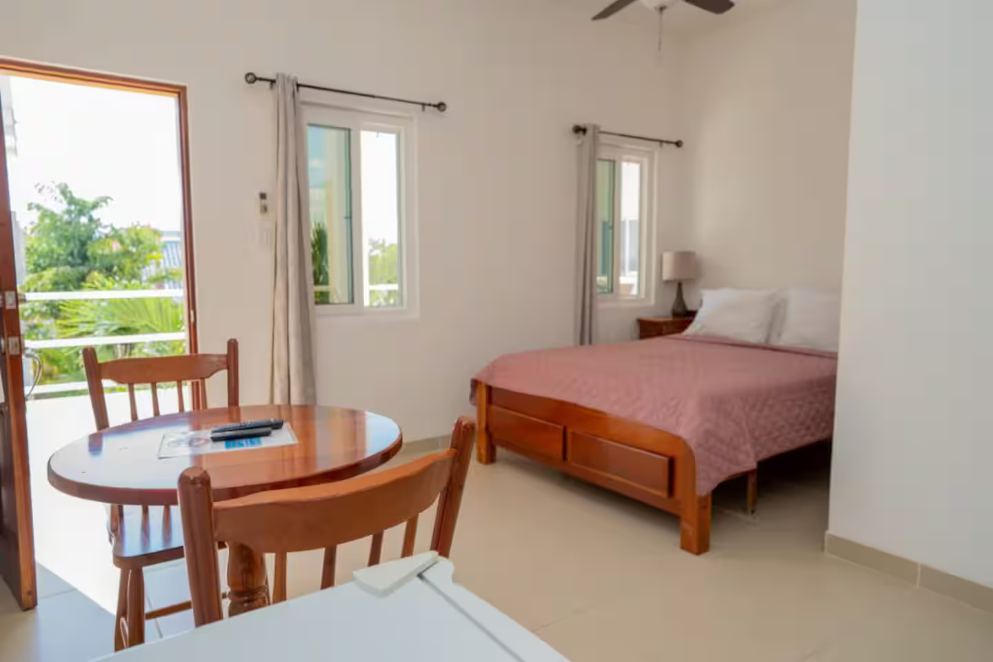 My husband and I spent four wonderful nights here. The room and grounds were pristinely clean and in a quiet location on the island. This unit has a large private balcony that's nice in the morning, but gets pretty hot in the afternoon sun. The rooftop patio was also great for a few drinks and watching the sunset. We'd love to come back someday!