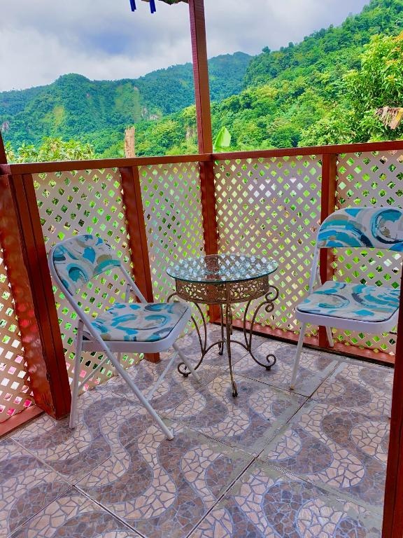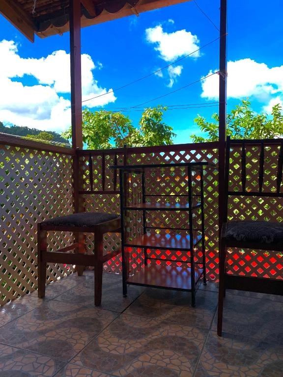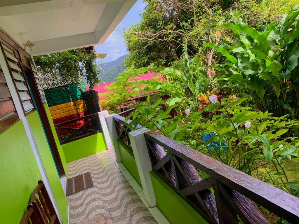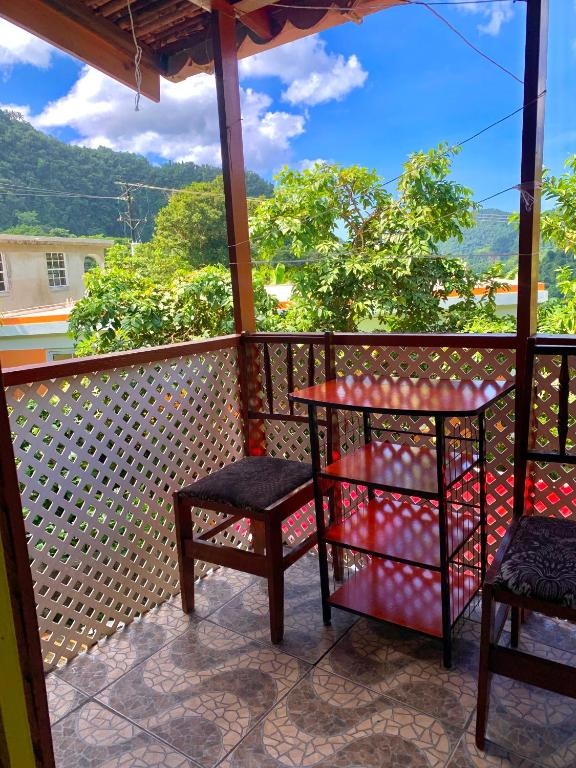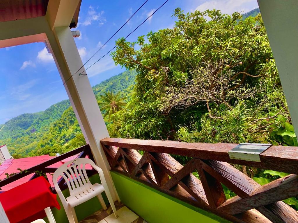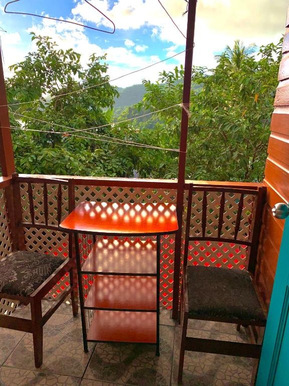 Everything. Joan and Al our hosts gave us the best experience we could hope for, sorting out car hire and a guide for Boiling Lake, home cooked meals every night, the most beautiful views over the valley and easy walking to the local sulphur spa.