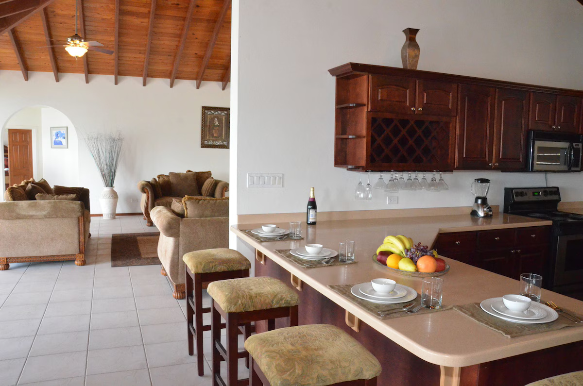 Incredible views of the ocean, seconds to the beach (walking), literally EVERYTHING you need to include beach toys, professional quality snorkel equipment, towels, etc. Kitchen is very well appointed with plenty of cookware, spices, plates, and drink equipment. Tonnes of room for a family of six as well. Highly recommend! Helene was wonderful and meet us with fresh mangos to boot.