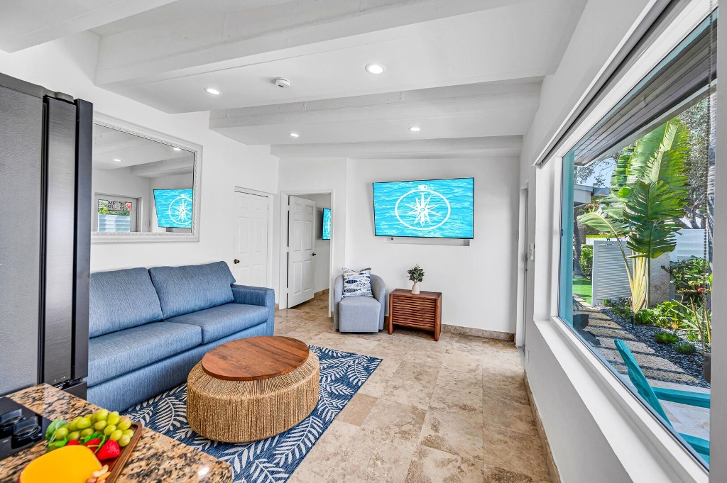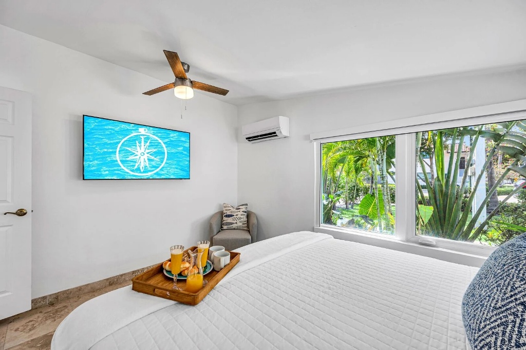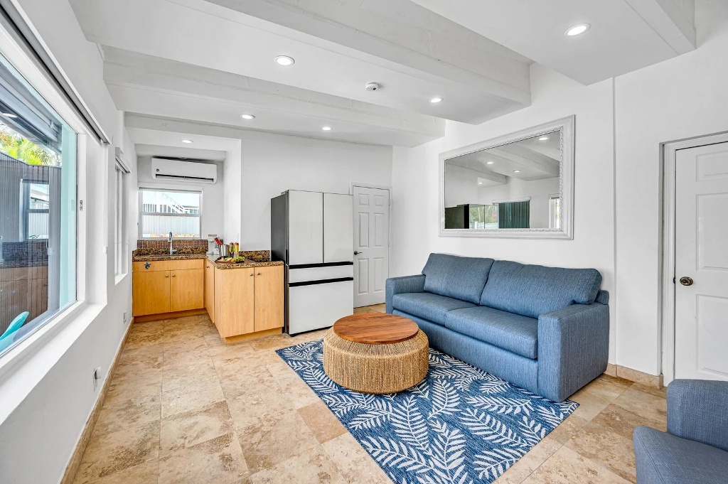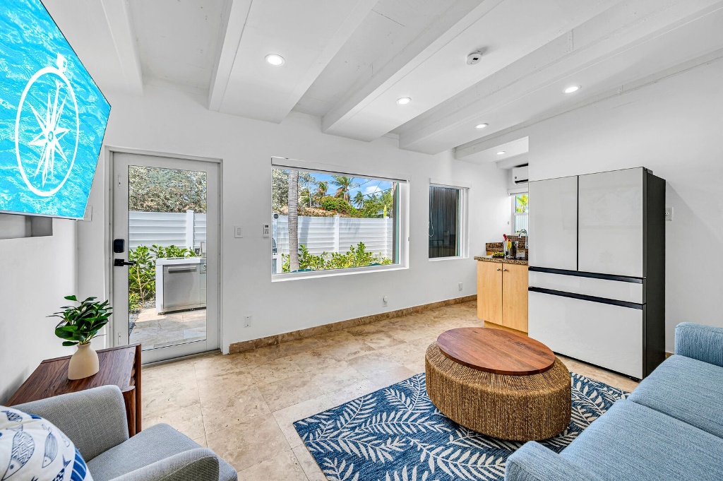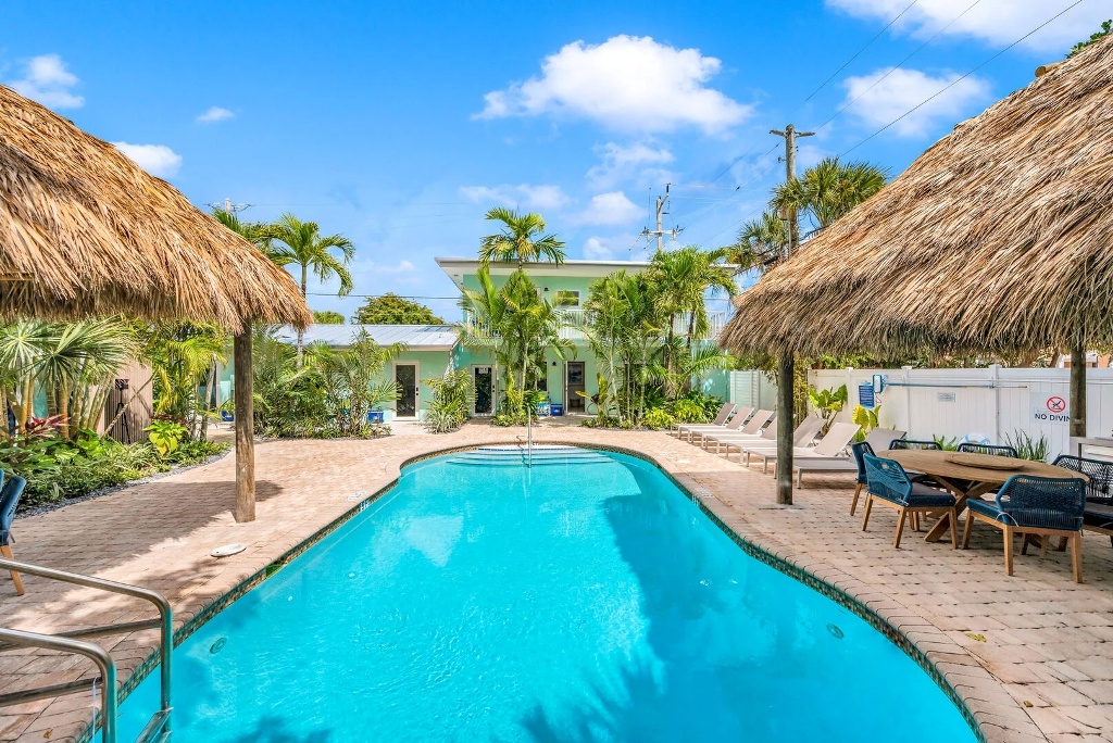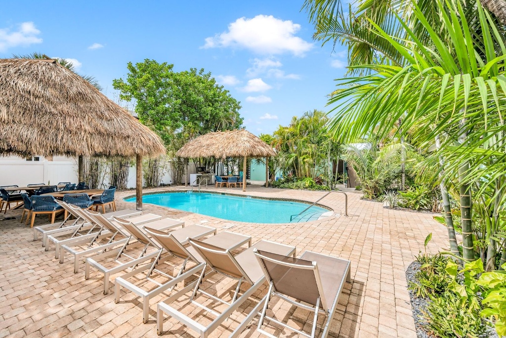 The perfect beach holiday spot—just a 3-minute walk from the Ocean and 15-min walk to both the picturesque city center and Water Taxi stop on the Intracoastal Waterway. Tucked away in a secluded retreat, this cozy one-bedroom suite sits in the heart of Lauderdale-by-the-Sea. The shared backyard patio offers a heated pool, al fresco dining, grilling stations, lounge areas.