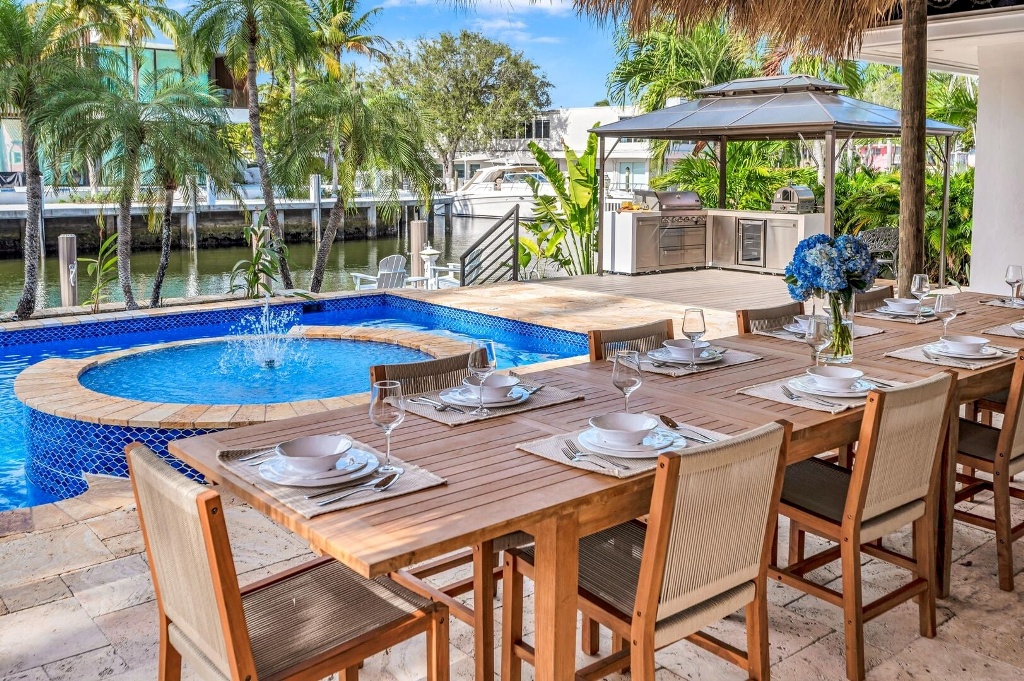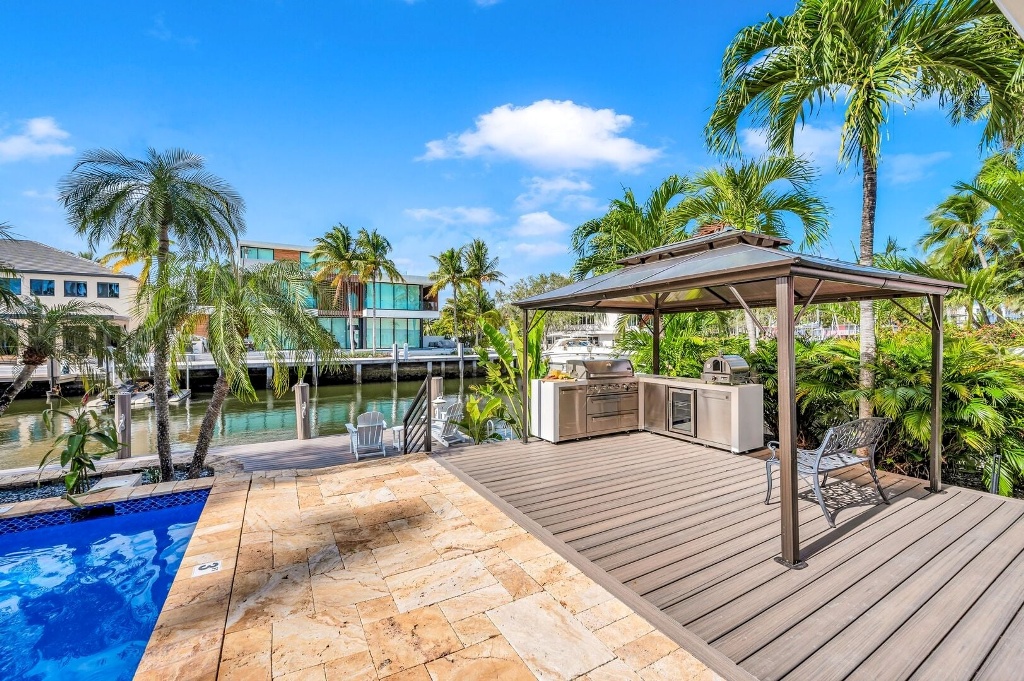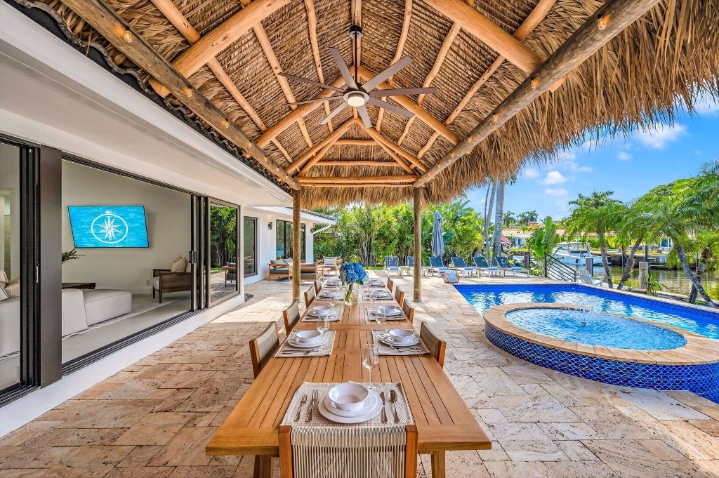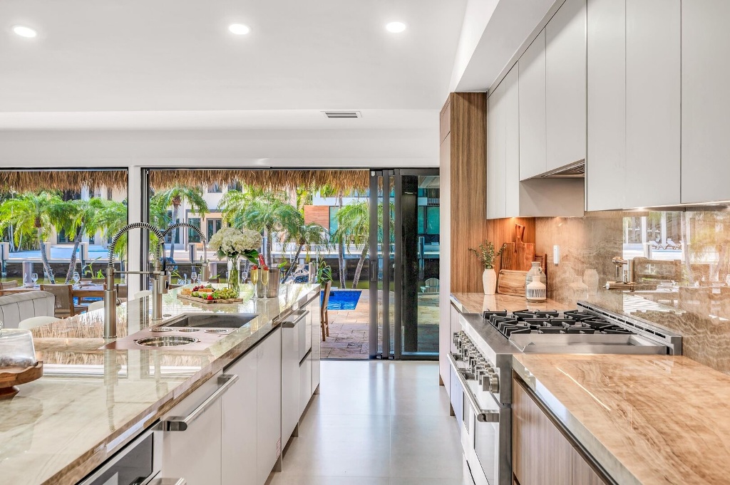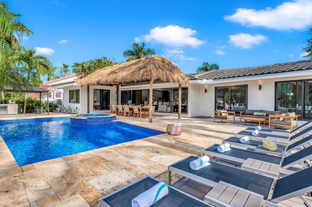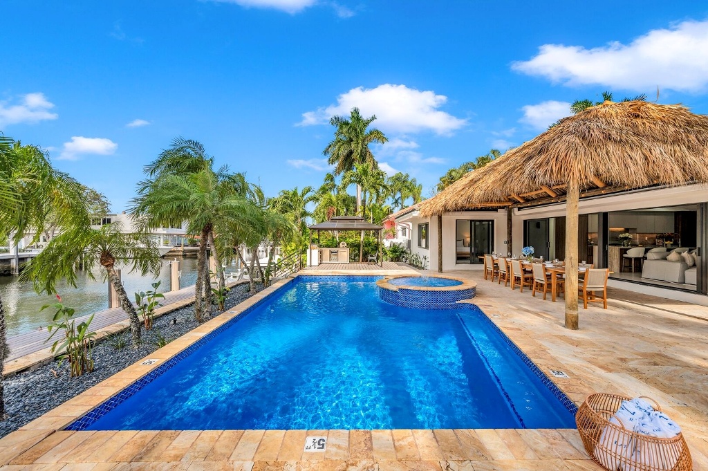 Pure escapism in Venice of America. Delight in the waterfront tranquility of a heated pool and canal views, framed by floor-to-ceiling windows in the spacious living area and outdoor lounge. Sumptuous meals from the gourmet kitchen or many neighboring restaurants. Nestled just off the picturesque Las Olas Blvd, leading from downtown (with its galleries, boutiques and restaurants) towards the Ocean. Four-minute golf cart ride away from the Beach.